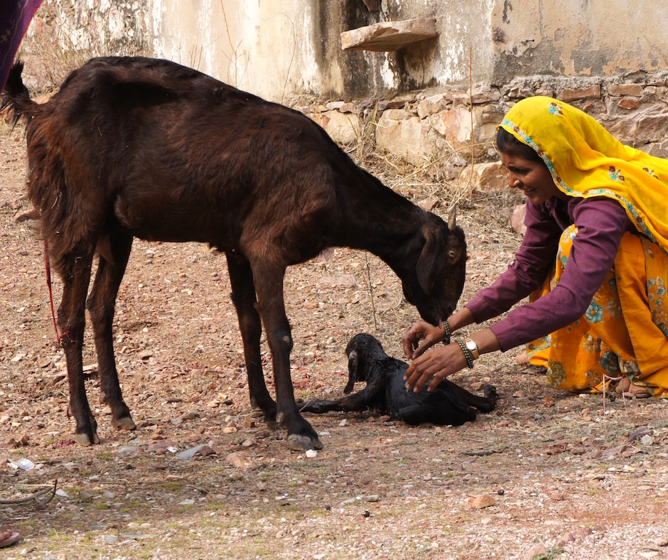 Il capretto è nato. Sta bene! Quale migliore anno questo appena iniziato, che secondo l’oroscopo cinese è proprio quello della capra! La vita si ripropone ancora ed ancora ripercorrendo un ciclo naturale. Che momento intenso e meraviglioso. Per così tanti anni sono stato distante dal vedere la nascita e la morte dal vivo che, a differenza di queste ragazze, per me è tutto così nuovo e così strano. Occhi colmi di stupore mi donano la classica faccia da turista, a cui le indiane non vedono l’ora di rivolgere richieste di denaro in cambio di una foto.